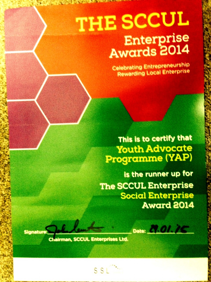 Congratulations to the staff of YAP Galway who were awarded a runner-up certificate in the SCCUL Enterprise Awards 2014 in the Social Enterprise category.