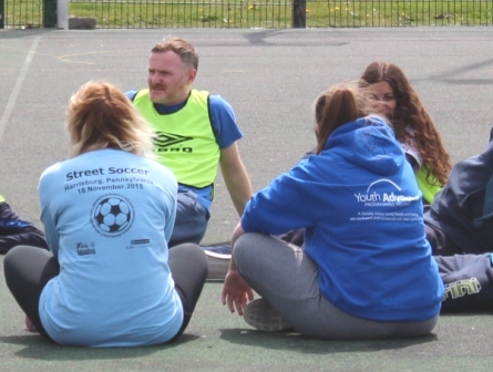 Yap Ireland would like to extend a huge thank you to our colleagues from YAP Inc. who spent a few days with us implementing training to our staff, young people and stakeholders. On Thursday 5th May YAP USA staff trained team leaders, advocates and community supports in the methodology of the street soccer movement. During this time, staff were introduced to the core values of respect, cooperation and solidarity through using soccer as a tool of social transformation. On Friday 6th May, the street soccer programme was delivered to over 35 young people and staff.